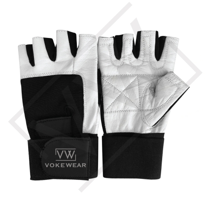 Description 100% Genuine Durable Goat Leather Ventilated Four-Way fabric on the back to reduce sweat build up Padded palm for added comfort,double stitching for extra durability Long Wrist Strap for added wrist support Dual Velcro Straps